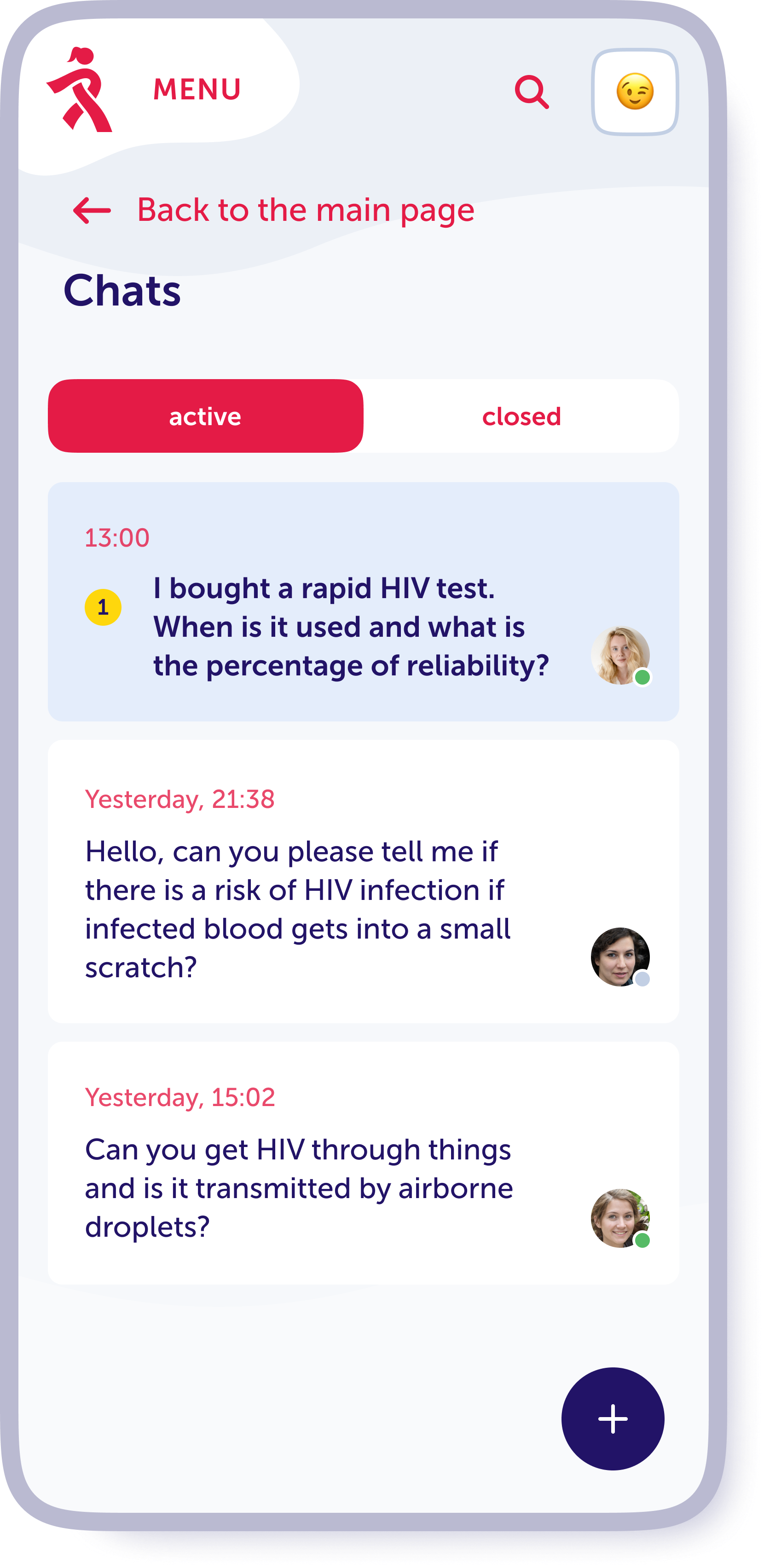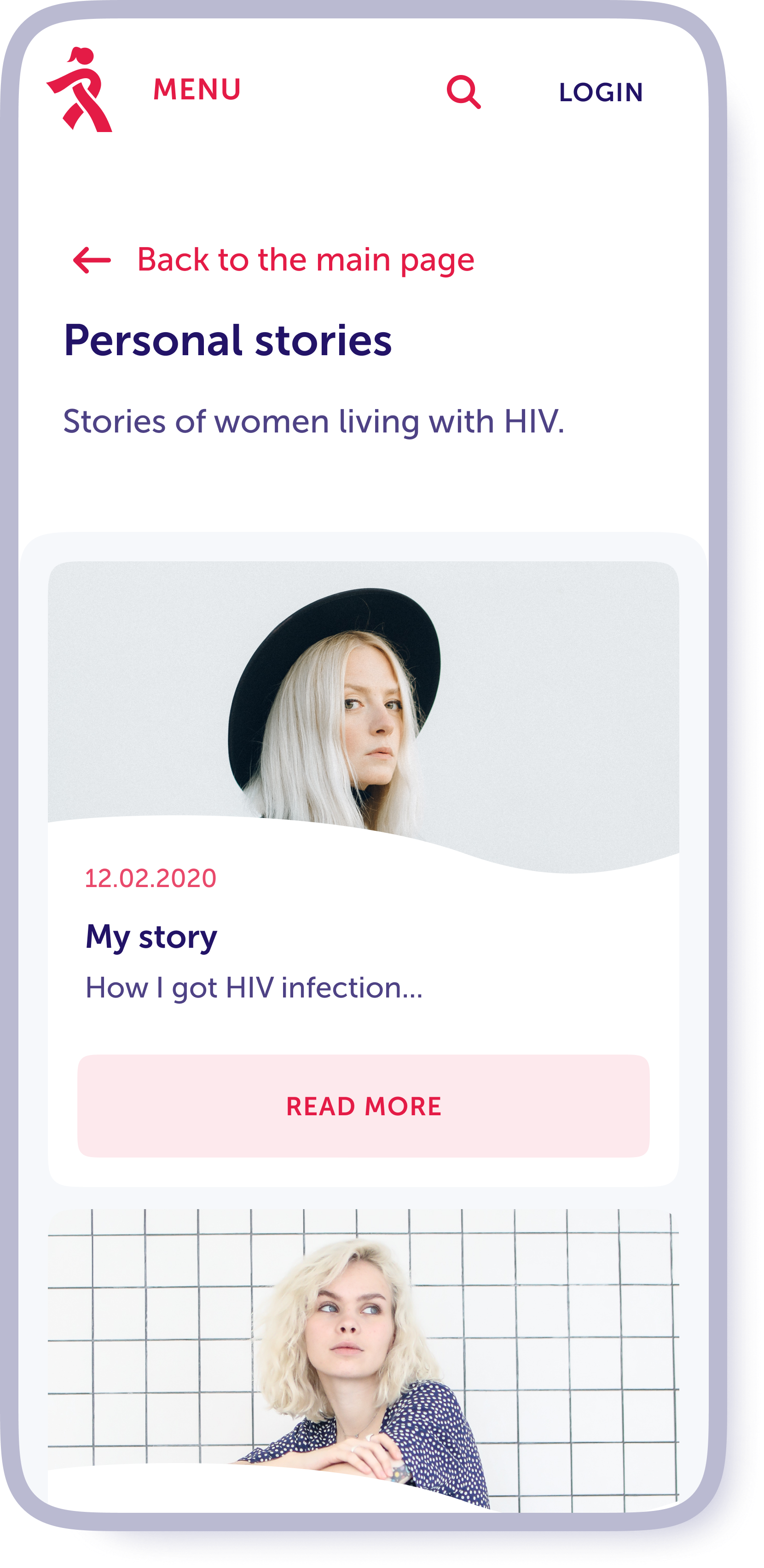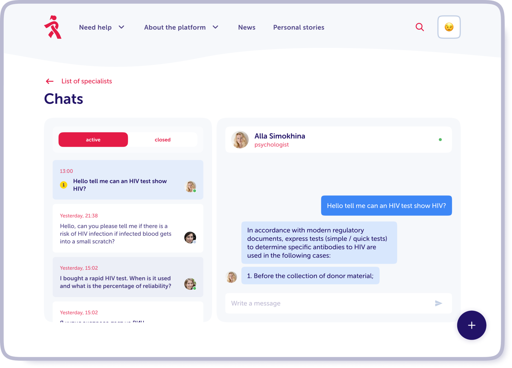 It is important that a person is not left alone with their problem. One of the goals of the project was to create a community of people supporting each other. To do this, we have added a section with personal stories of women living with HIV and a private chat function in Viber.