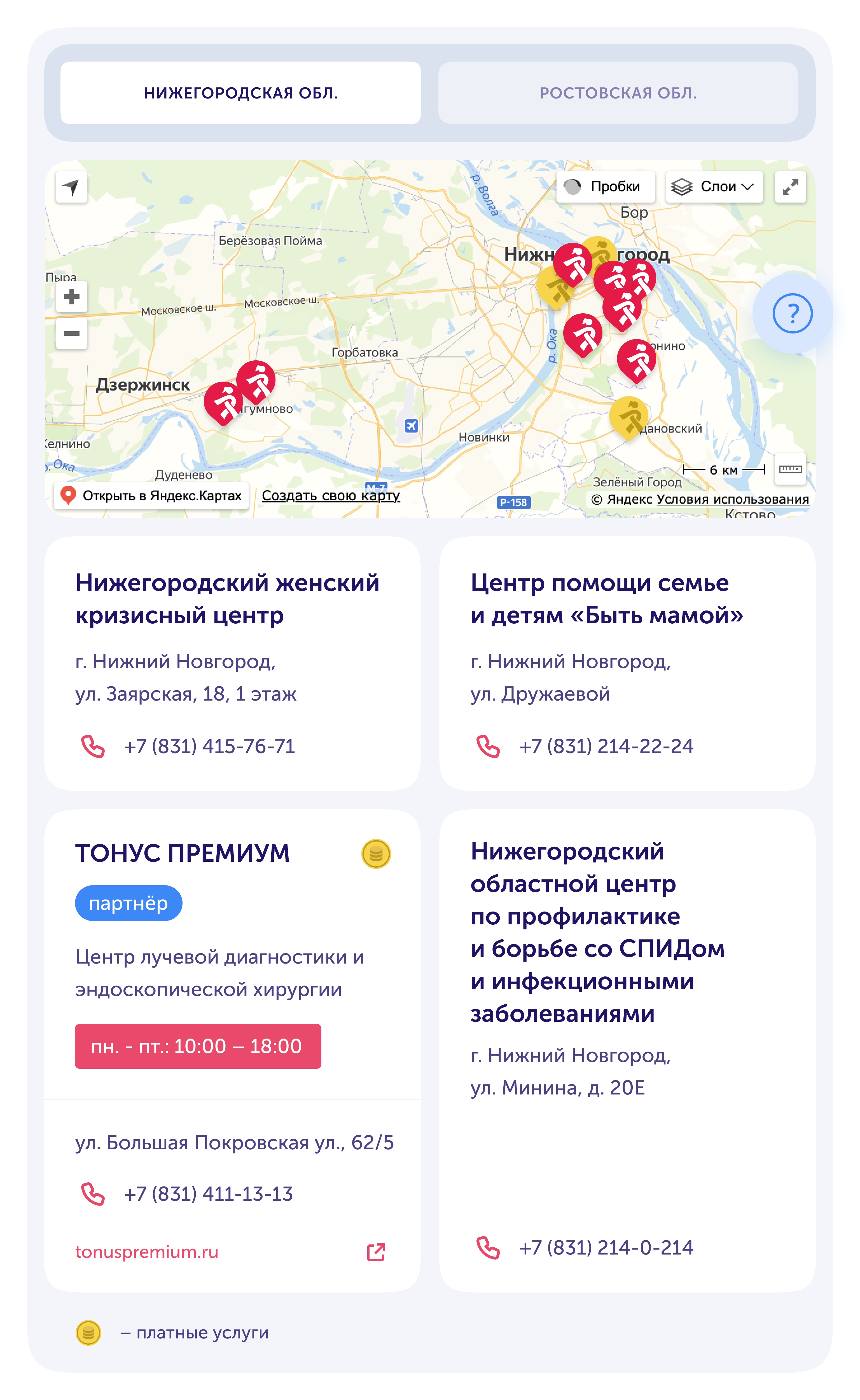 The site has a list of online resources where users can learn more about HIV or get additional help, and a map of organisations that provide assistance to people with HIV+ status. Paid organisations are additionally marked.