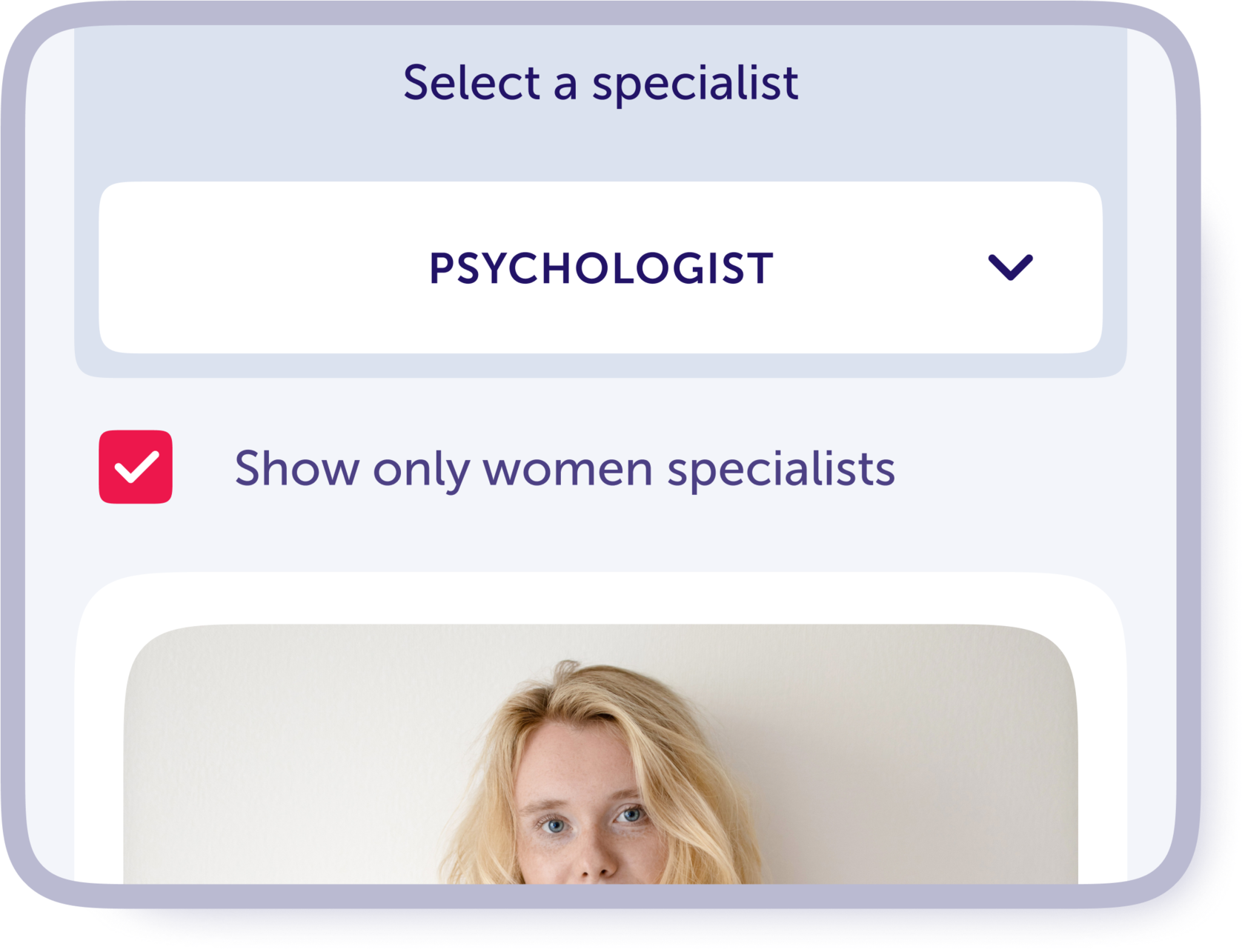 It is important for a woman to feel comfortable discussing her problems; that is why we have designed a feature to show only female doctors.