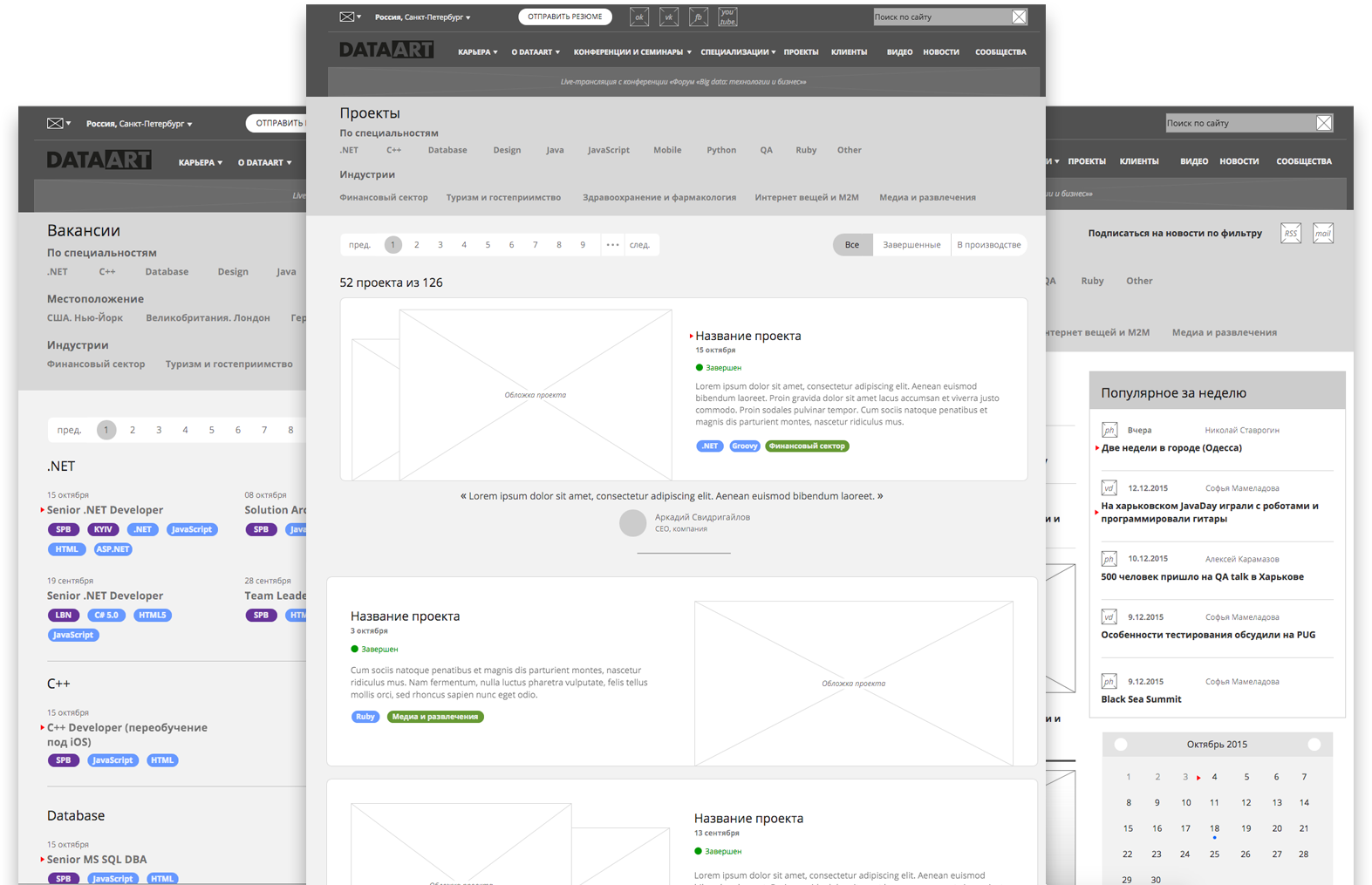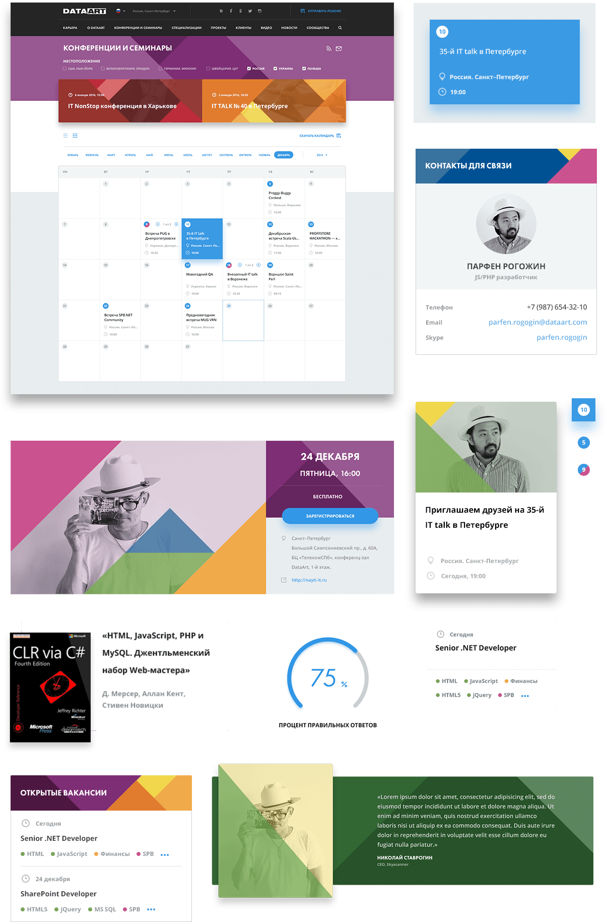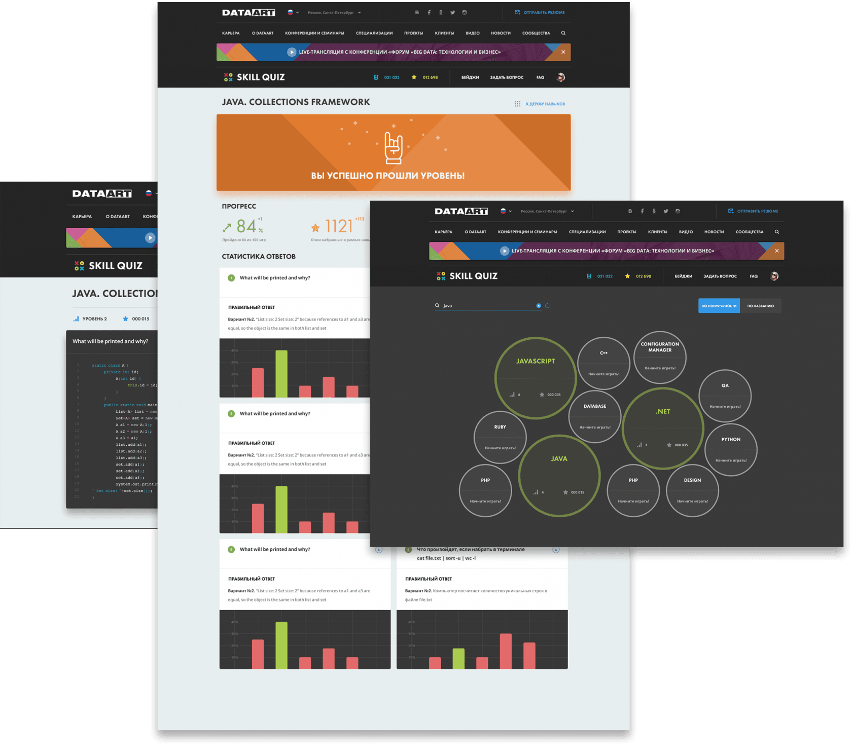 The quiz incorporates all the technologies DataArt uses. The more often a user plays levels related to a specific technology, the larger that area becomes, for quick access.
