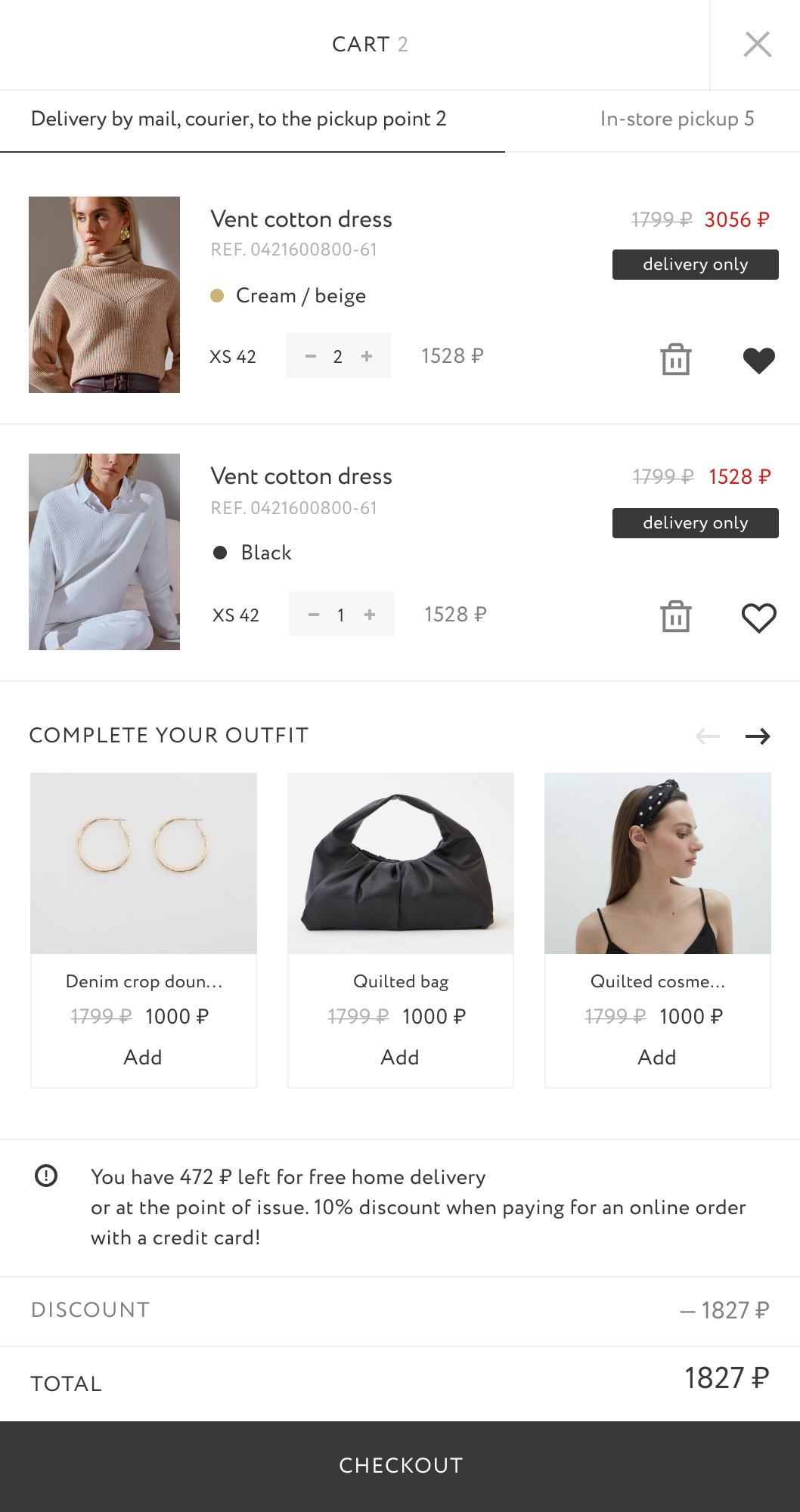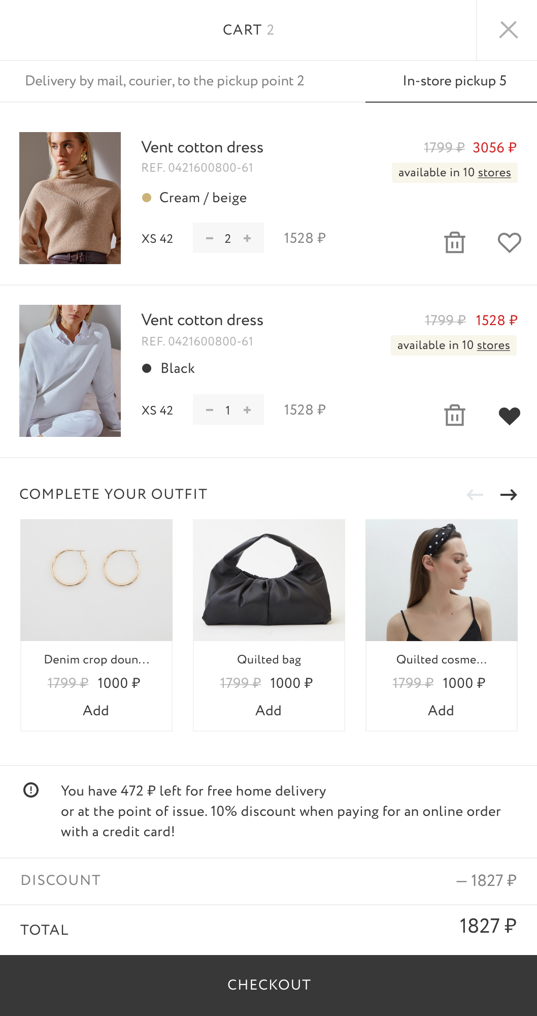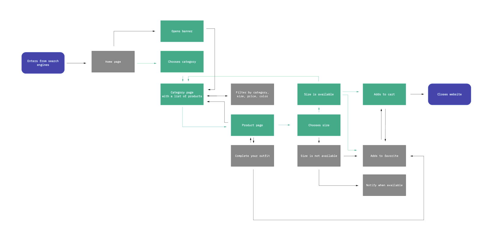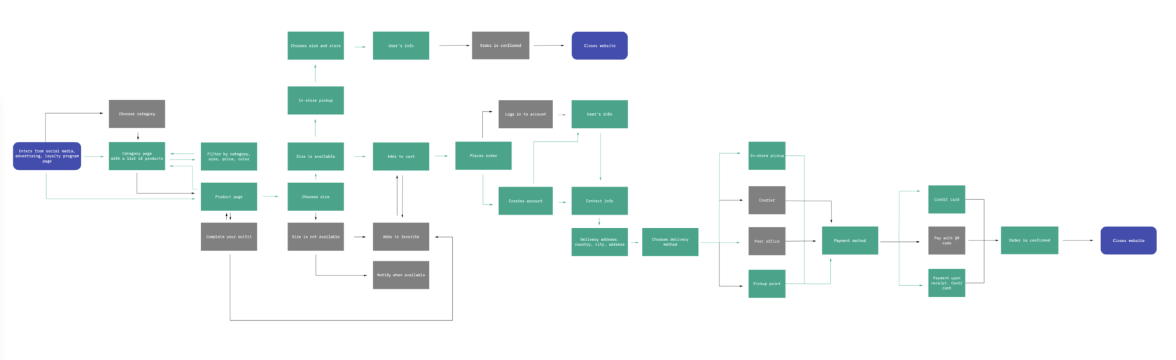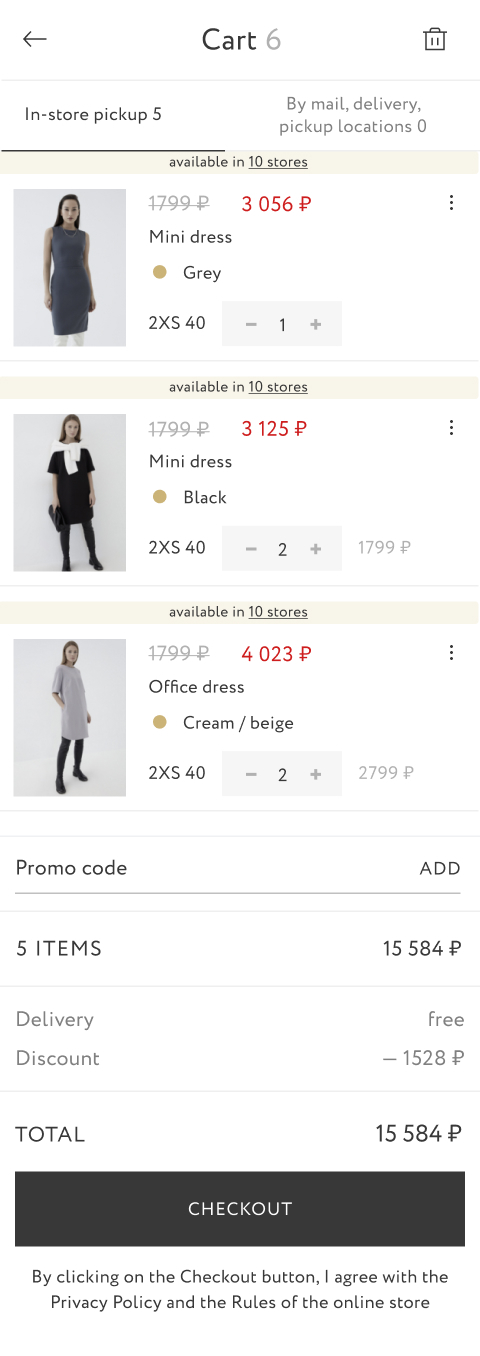 We learned that after adding items to the cart and proceeding to checkout, users found out that some clothes can be delivered, while others were only available by an in-store pickup. In addition, the process of placing an order was becoming more complex and confusing, which as a result, led users to leave the site without buying anything.